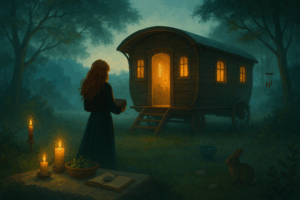Imagine-toi dans une roulotte de bois, bercée par le vent des montagnes ardéchoises. La terre respire sous tes pas, les arbres murmurent, le feu crépite, et l’eau s’invite dans le silence. Ici, loin du tumulte, commence ton voyage : un retour à la magie naturelle, celle qui relie la matière et l’esprit, le souffle et la flamme, le visible et l’invisible.