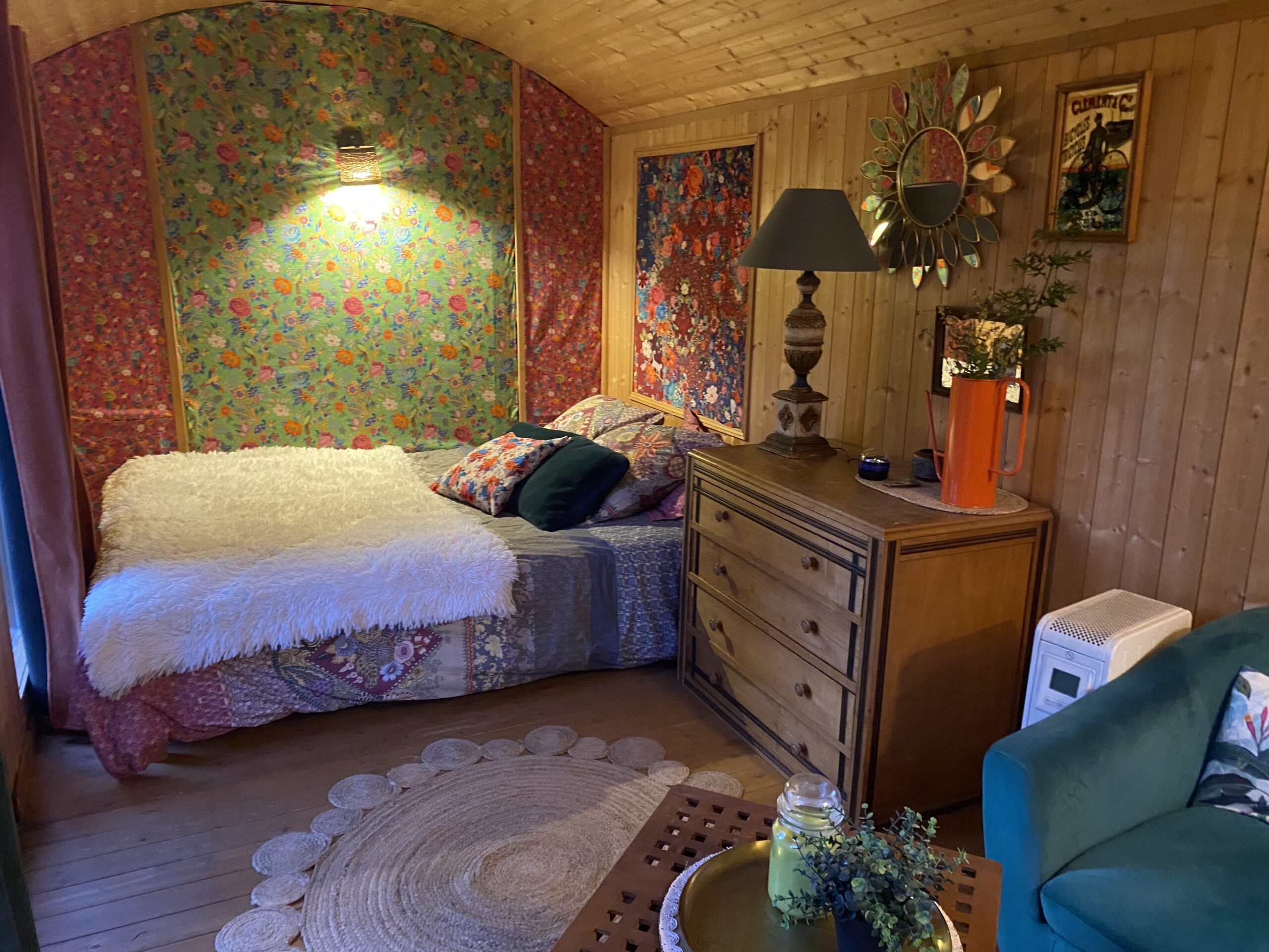 Au cœur de l’Ardèche, une roulotte en bois t’accueille. Un cocon perché dans les hauteurs, entre forêt et montagnes, où les étoiles veillent la nuit. Ici, la simplicité devient luxe : douche et cuisine extérieures, toilettes sèches, repas préparés ou partagés. On cuisine, on rit, on contemple. On apprend à vivre avec les éléments, non plus contre eux.